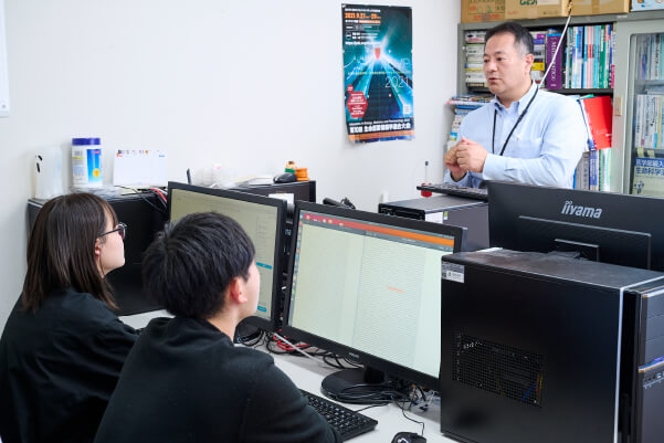 これは物体の形・位置・大きさをコンピューター内部に表現するソフトだね。先生が丁寧に教えてくれています!