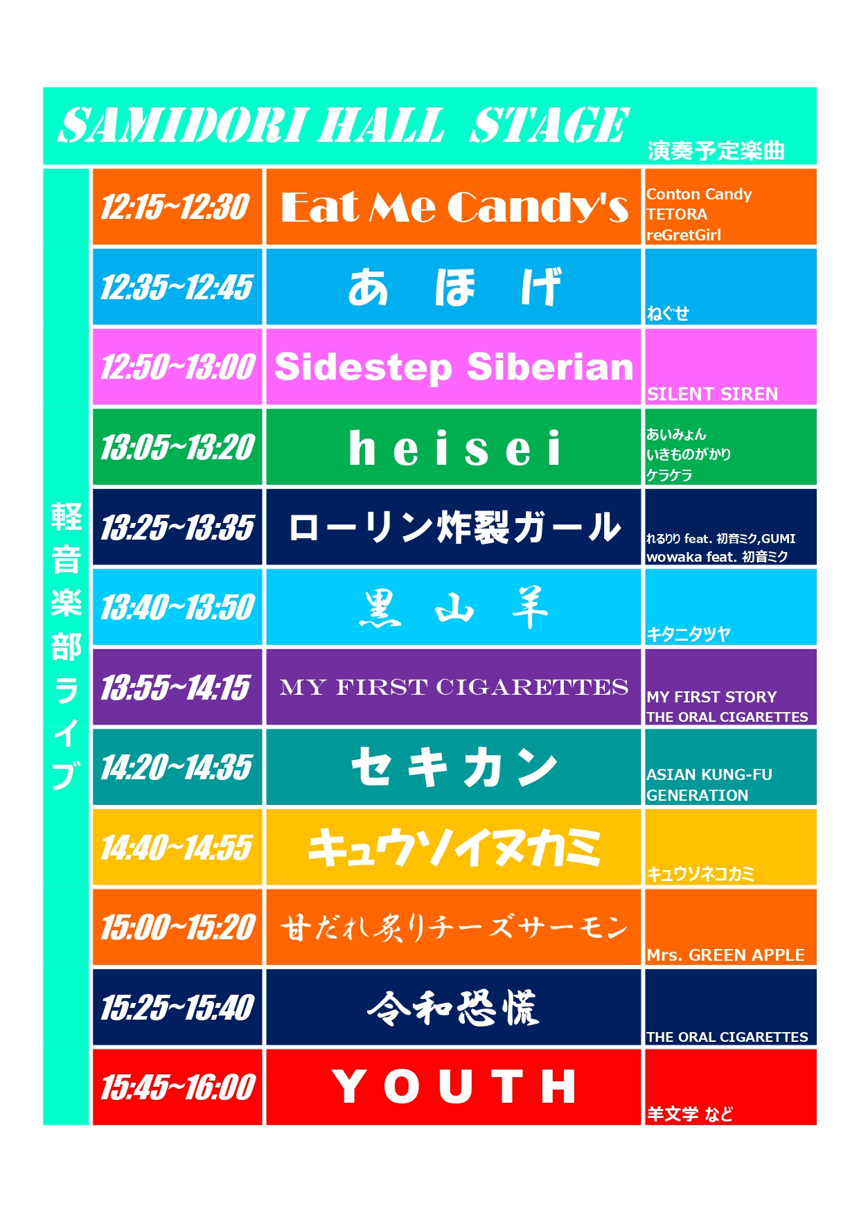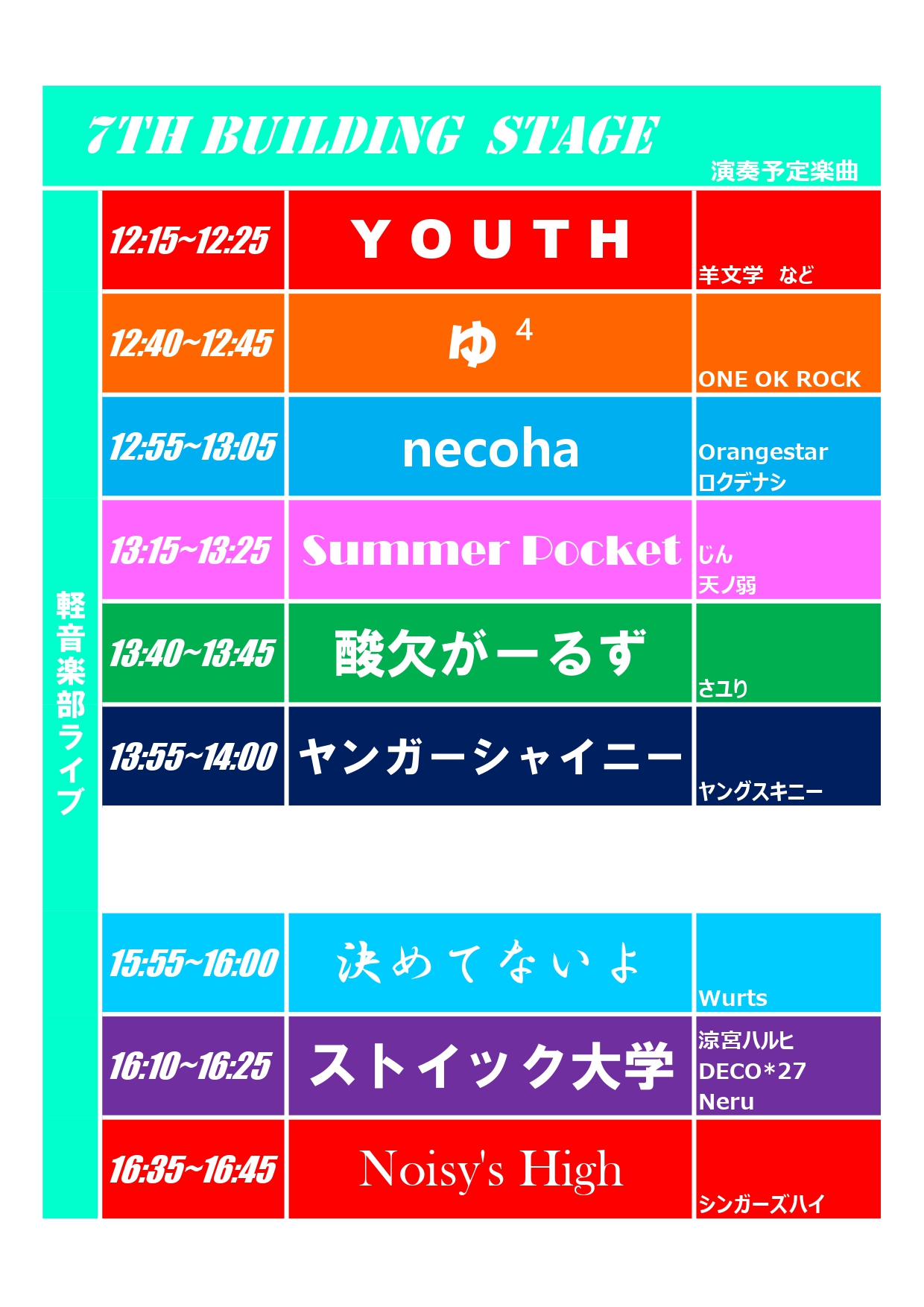 7号館出演バンドタイムテーブル