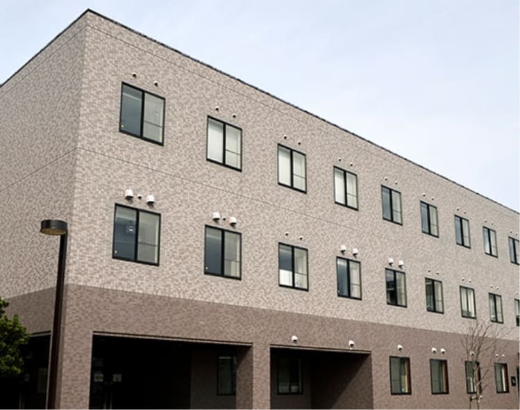 1階は学生専用のロッカールームがあります。女性用にはパウダーコーナーを設置しています。2階、3階には講義室があります。