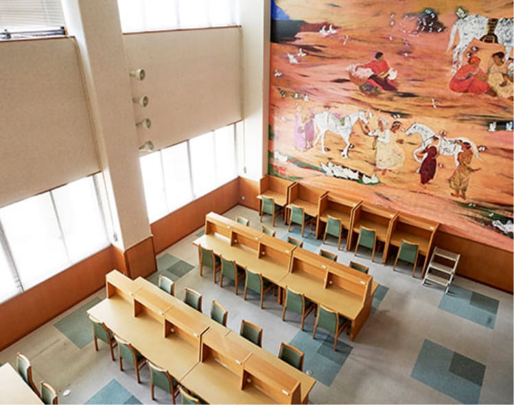 1階と2階には図書館があります。学習スペースや蔵書も多くあり、静かな環境で学習可能です。