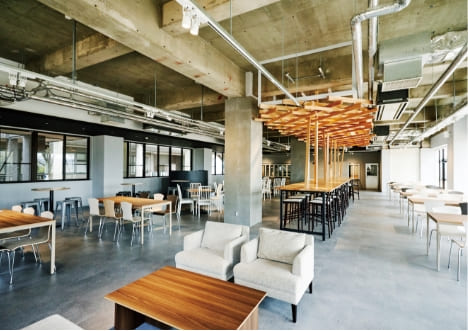 1階には学生食堂があります。天井が吹き抜けとなっているカフェスペースもあります。開放的な空間でゆったりランチができます。