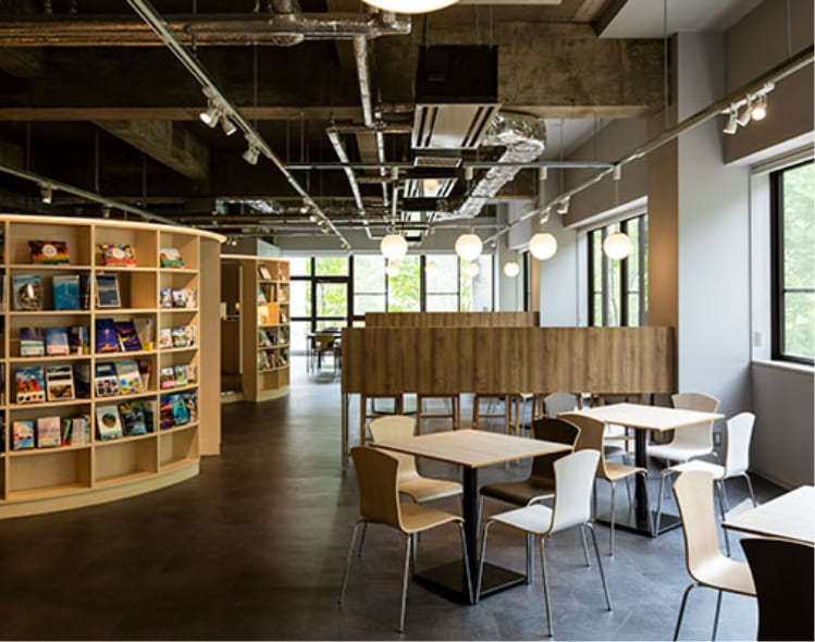 2階にもカフェスペースを用意しており、外の景色を見ながら休憩や学習など多様な使い方ができます。